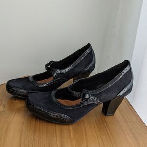 Clarks Artisan Black Mary Jane heels suede leather size 6 @s1