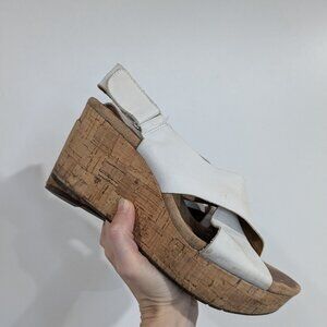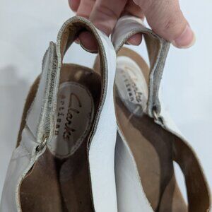 Clarks Artisan Leather Sling Back Cork Wedge Sandals White Size 8