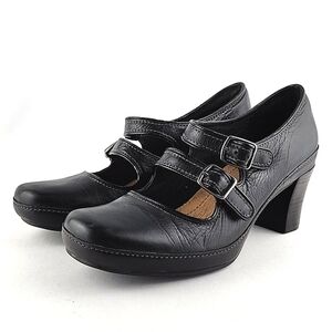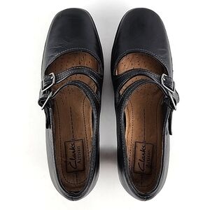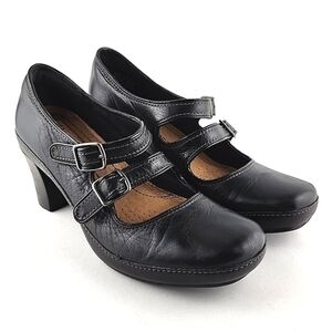 Clarks Artisan Passion Black Leather Double Strap Mary Jane Pump Heel Size 8M