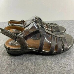Clarks Artisan Silver Strappy Leather Sandals Women’s Size 9M
