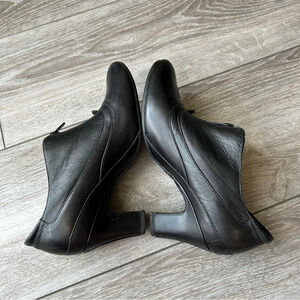 Clarks Artisan Smooth Buttery Leather Zip Up Clogs Booties in Black