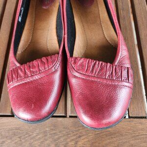 burgundy leather flats size 8, Clarks leather flats size 8, Clarks Artisan flats size 8, wine-coloured flats size 8