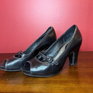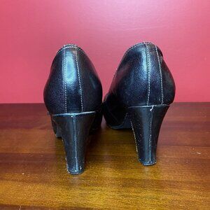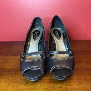 Clarks Artisan Women’s Leather Open Toe Black 3” Heels - Size 7M
