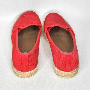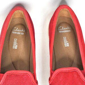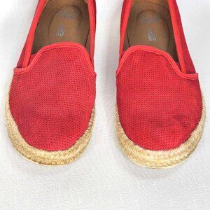 Clarks Azella Theoni red perforated suede slip-on espadrilles in women's size 7.5