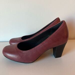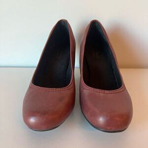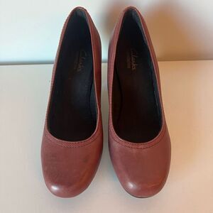 Clarks Bendables Brown Red Round Toe Comfort Leather Heels Size 6 M Office Career