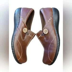 Clarks Bendables Sixty Delta Brown Leather Loafers Size 7W