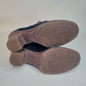 Step out in style with these elegant black suede ankle boots made by Clark's. Perfect for any occasion, they offer comfort when wearing, with a soft inner sole. The base and heel of the boot looks to be made from recycled rubber which gives a little more of a softer cushion when walking.