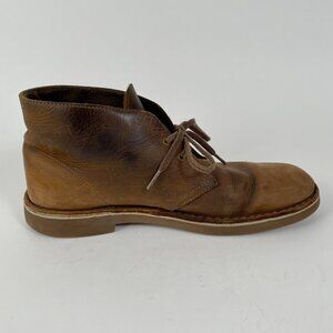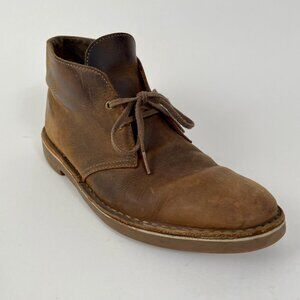 Amazing pair of slightly distressed brown leather Clarks -- the OG desert boots. The rich brown leather is in fantastic shape, with such a gorgeous patina. Nicely worn in, but still in great condition. They are a classic for a reason!