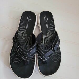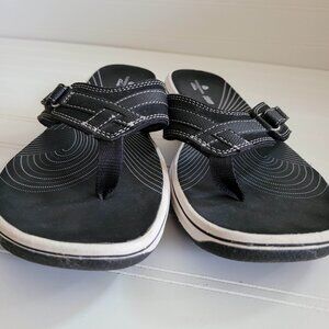 Clarks Cloudsteppers Breeze Sea Sandals 9 Black Flip Flop Comfort