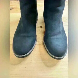 Get moving in these tall, riding inspired boots. The rubber sole provides traction and flexibility, while the almond shaped toe and leather ankle wrap with buckle detailing add the to sophisticated look of this boot. Wear there with jeans or skirts as they will compliment any outfit.