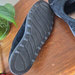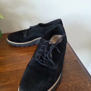 Clarks Collection Faux Suede black lace up wedge shoes. Size 7.5