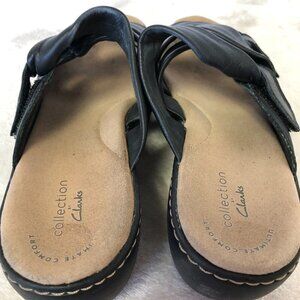 Clarks Delana Jazz Black Strappy Leather Summer Slide Sandal Size 7