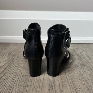 Clarks Deva Heidi black leather, heeled sandals. Size 8. NWT