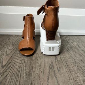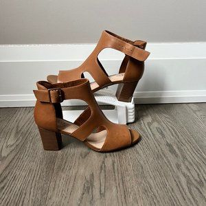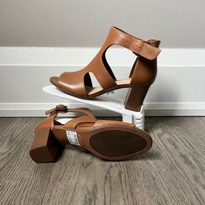 Clarks Deva Heidi tan leather, heeled sandals. Size 8. NWT