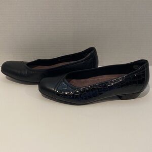 #1497 Clark's Everyday Women's Loafers Flats Black Leather Patent Active Air 8.5M