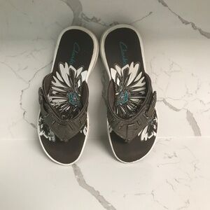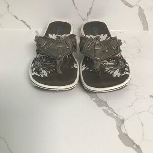 Clarks Flip Flop Sandal Toe Post Metallic Bronze US 6
