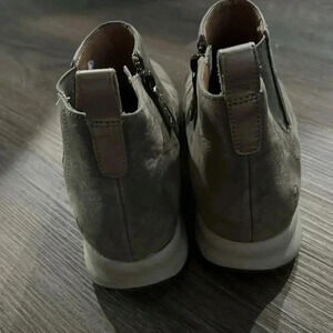 Stylish gray ankle boots. Features side zipper. Comfortable sole.