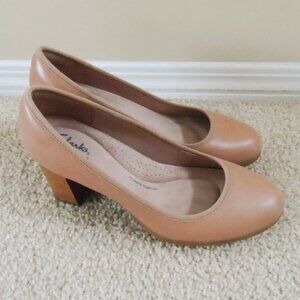 lightly worn. Warm beige color Lather upper Excellent conditions Heel - 7.5""