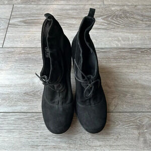 Clarks Indigo Black Suede Leather Heel Ankle Bootie Boots