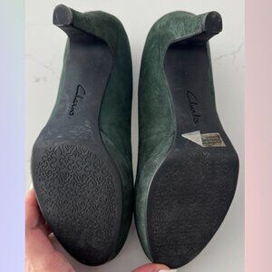 Clarks Indigo Moss Green Suede Heels – Size 7