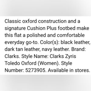 Clarks Ladies Leather Zyris Toledo Oxford. Size 10