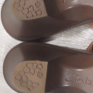Clarks Ladies Size 7.5 Tan Leather Upper Heeled Slip On Sandals