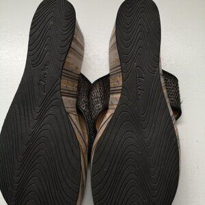 Clarks Ladies Size 9.5M Raffia Upper Thong Wedge Heel Sandals