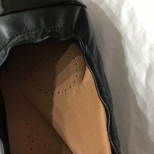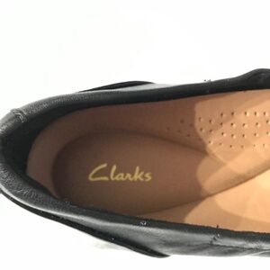 Comfortable Clarks genuine leather flats, black, size 8 1/2 Wide width, contour cushion.