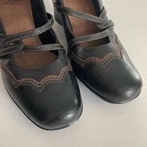 Clarks Leather Wedge Heels Womens 7.5 Black Brown Strappy Comfortable Shoes VGUC