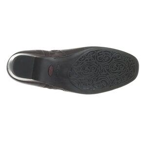 Bootie featuring buckle strap at opening and ribbed side panels