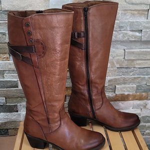Antiqued studs and wraparound straps detail the shaft of a knee-high boot cast in premium Italian full-grain leather.