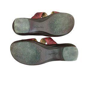Clarks Red Leather Sandals Size 7M Slide On Buckle Comfort Beach Resortwear