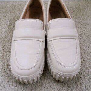 Platform-style wedge, In Excellent conditions Premium cream leather Stitch detailing and crepe-look texture nod