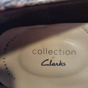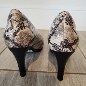 Clarks snakeskin-look pumps, 3.5" heel, comfortable insole, light platform sole, man-made upper, never worn, excellent condition, super comfortable!
