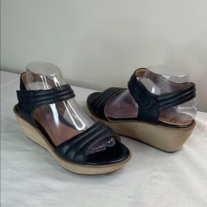 Clarks Soft Cushion Hazelle Alba Black Ankle Strap Wedge Sandals Velcro Size 9