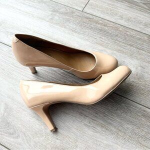 Clarks Soft Cushion Patent Leather Round Toe Pumps