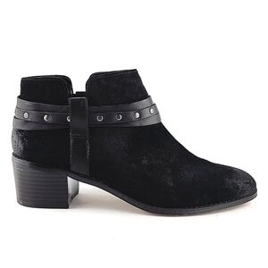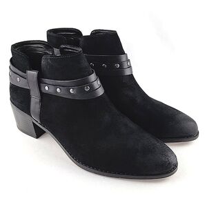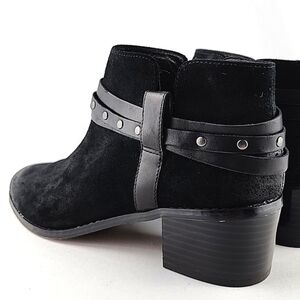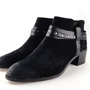 Clarks Somerset Ankle Boots Black Suede Studded Wrap Around Strap Side Zip 8.5M