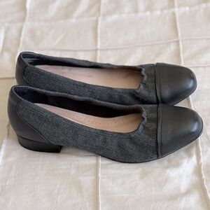 Step into effortless style and all-day comfort with these Clarks Collection Ultimate Comfort Loafers. Featuring a classic cap-toe design in smooth black leather with a charcoal herringbone fabric body, these flats pair perfectly with everything from workwear to weekend outfits. The cushioned Ultimate Comfort insole makes them as comfortable as they are chic.