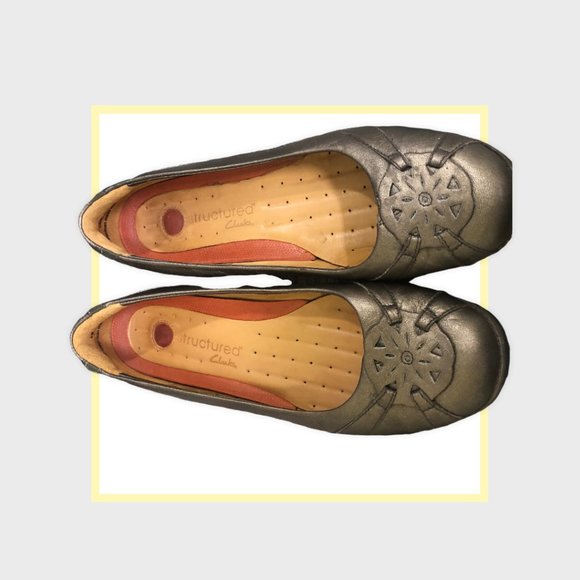 Clarks Unstructured Burnished Gold Leather Ballet Flats Shoes Size 8