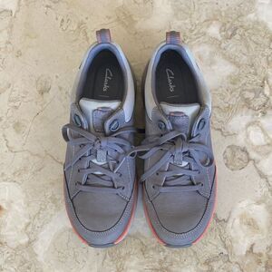Worn only once, in as new condition Clarks Wave 2.0 Lace sneakers in grey/peach. These are hard to find particularly in this size.