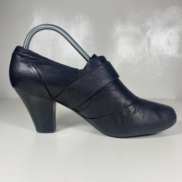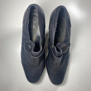 Clarks Women Shoes Bendable Heeled Booties Almond Toe Leather Black Sz 10