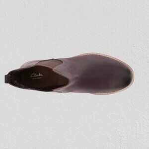 Stylish and comfortable Clarks Maypearl Nala leather ankle boots in a rich burgundy shade. Clarks’ signature cushioned footbed for all-day comfort. Worn only a couple of times — almost new condition.