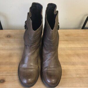 Offered in rich leather finished with contrast stitching and a buckled accent strap, this boot is a natural partner to matchstick cords, skinny jeans, tights, and leggings