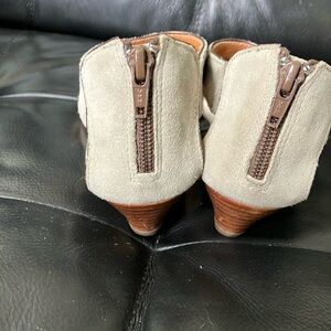 Good used condition, minor scratches or discoloration as seen in photos. Lovely soft leather upper. Zip behind heel. Lovely grain finish on heel.