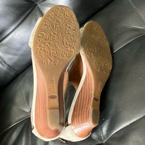 Clark’s artisan size 6 women’s Wedge Sandals with T-Strap and Decorative Cutouts