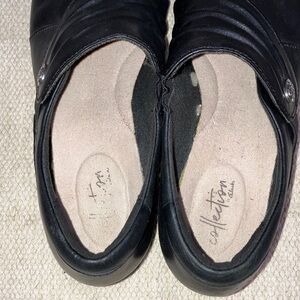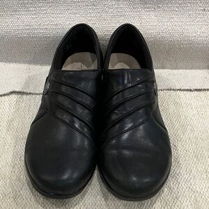 Clarks artisan size 8 women’s Black Leather Loafers with built in elastic