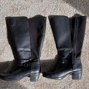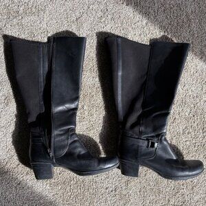 Clarks knee high black leather boots, WIDE CALF, 9.5 M