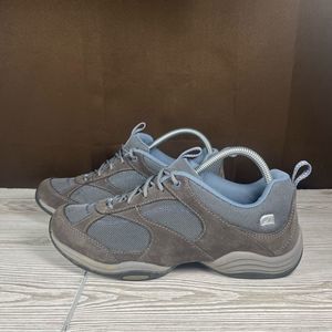 Clarks Brown Suede Blue Mesh Walking Shoe Sneaker Womens Womens 10.5 Wide
