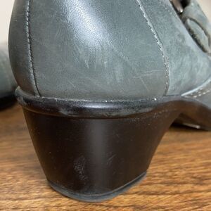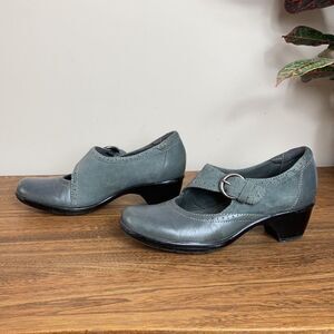Clarks Grey Leather Mary Jane Comfort Career Heels