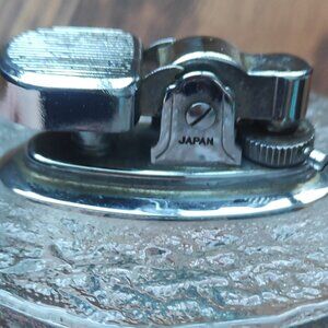 We like to bring the vintage table lighters to the shop because they are useful items and can be beautiful room decor. This cool vintage piece is perfect for the upcoming winter season and has the look of a pretty chunk of ice. The silver tone lighter is stamped Japan and we are not sure that the piece works because we did not have flint or fluid to test it so they are sold as is. The lighter is about 3 ¼ inches tall and about 2 ½ inches in diameter. The glass is in great condition with no chips or cracks.